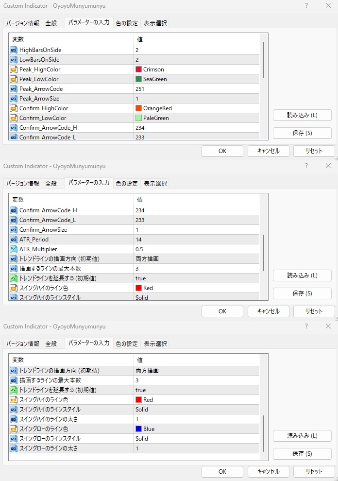 描画するラインの本数や、転換点の検出感度まで、あなたのトレード戦略に合わせて細かくカスタマイズが可能です。