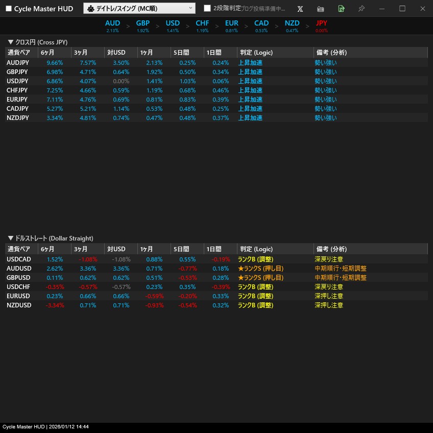 -スイングトレード, デイトレード, 環境認識, 通貨強弱