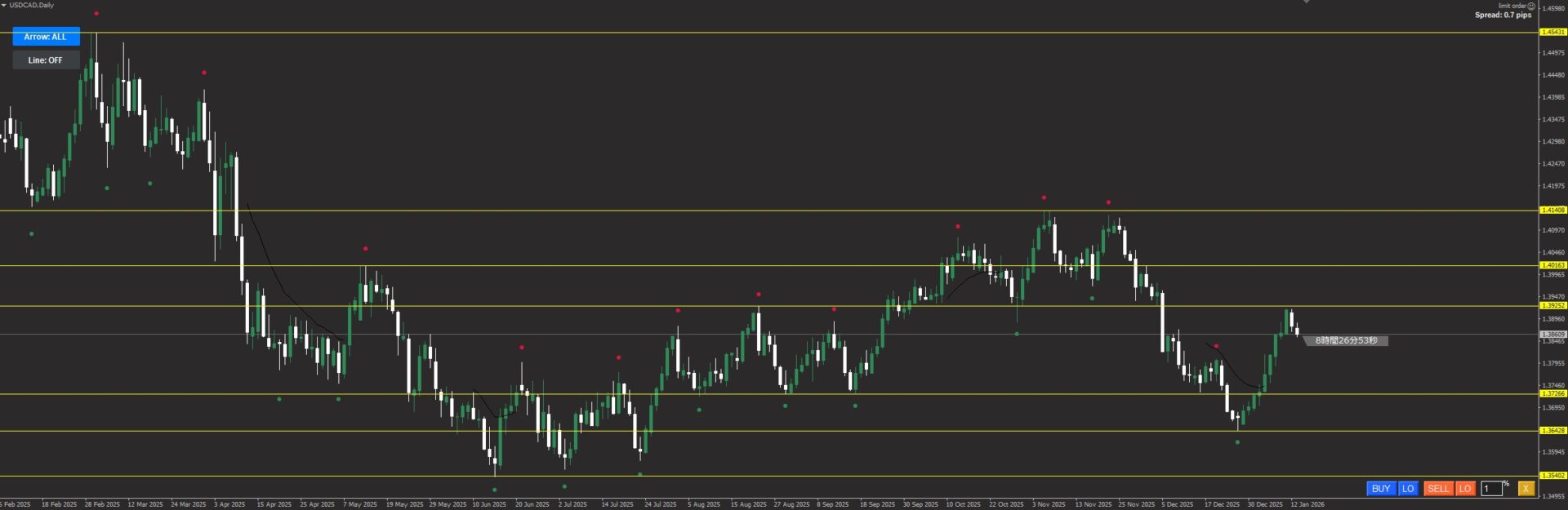| USDCAD | 0.84% | -1.31% | 0.71% | 0.07% | -0.03% | 再上昇? |
