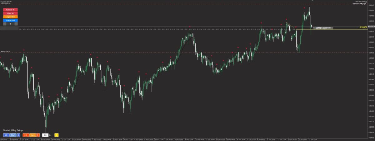 このSwingSniperのラインと現在価格の乖離がさ、週明けの窓に反映されてるのが見えるんだ。これってたぶん、介入関連の話が影響してると思うんだよね。